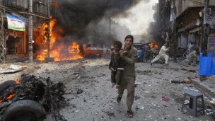 Police said the bomb exploded in the market Kissa Khwani and led to shops and vehicles on fire.